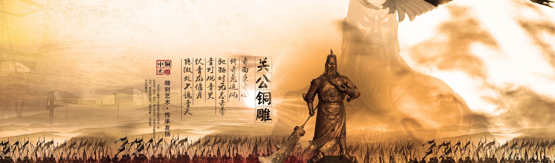 河北中正銅工藝品制造有限公司是一家具有獨立設計、雕塑、鑄造、制作施工能力的單位。擁有完善的,大型的,先進的生產設備,并由多位經驗豐富的高級鑄造技師指導生產及制作。公司主要鑄造銅關公,九龍銅關公,福建銅關公,臺灣銅關公,關羽雕塑,鑄銅關公,銅雕關公,1米銅關公,2米銅關公等,可按客戶提供動物銅雕圖片訂做加工銅關公,九龍銅關公,做工精美,質量保證。